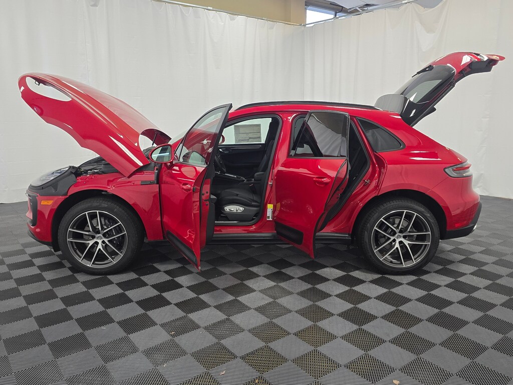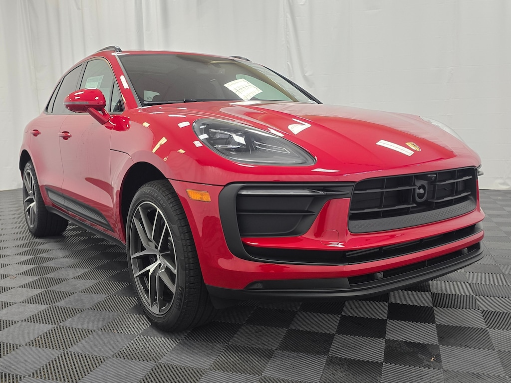 Carmine Red 2026 Porsche Macan AWD 7-Speed Porsche Doppelkupplung (PDK) 2.0L Turbocharged 14-Way Power Seats with Memory Package, ABS brakes, Active Cruise Control, Alloy wheels, BOSE Surround Sound System, Electric Steering Column, Electronic Stability Control, Emergency communication system, Exclusive Design Fuel Cap, Front dual zone A/C, Front Ventilated Seats, Heated door mirrors, Heated front seats, Heated Steering Wheel, Heated Windshield, Illuminated Bespoke Door-Sill Guards in Dark Silver Brushed Aluminum, Illuminated entry, Interior Trim in Dark Walnut, Lane Change Assist (LCA), LED Headlights with Porsche Dynamic Light System Plus, Low tire pressure warning, Navigation System, Panoramic Roof System, Porsche Communication Management, Porsche Crest on Front and Rear Headrests, Power Liftgate, Premium Package Plus, Rear Heated Seats, Remote keyless entry, Roof Rails in High Gloss Black, Sport Tailpipes in Silver, Sunblind For Rear Side Windows, Surround View, Traction control, Trailer Hitch Without Tow Ball, Wheels: 20 Macan S in Highly Polished Dark Titanium.